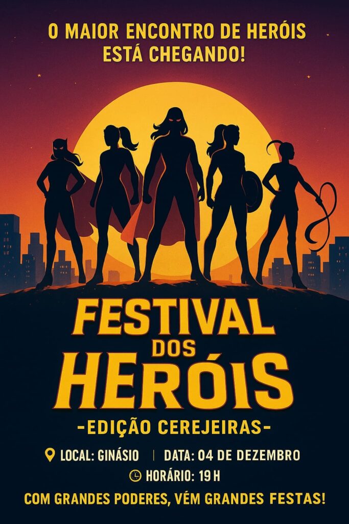 E nesta quinta-feira, 04 de dezembro será o dia do Evento anual com o título “Festival dos Heróis”, edição Cerejeiras.